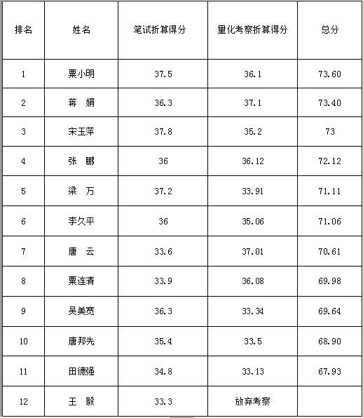 会同县“三类人员”综合得分情况公布 来源: 作者: 发布时间:2016-04-19 浏览次数: 次 【字体:小 大】 会同县“三类人员”综合得分情况公布(优秀村干部) 会同县“三类人员”综合得分情况公布(大学生村官) 会同县“三类人员”综合得分情况公布(乡镇事业站所) 【打印正文】