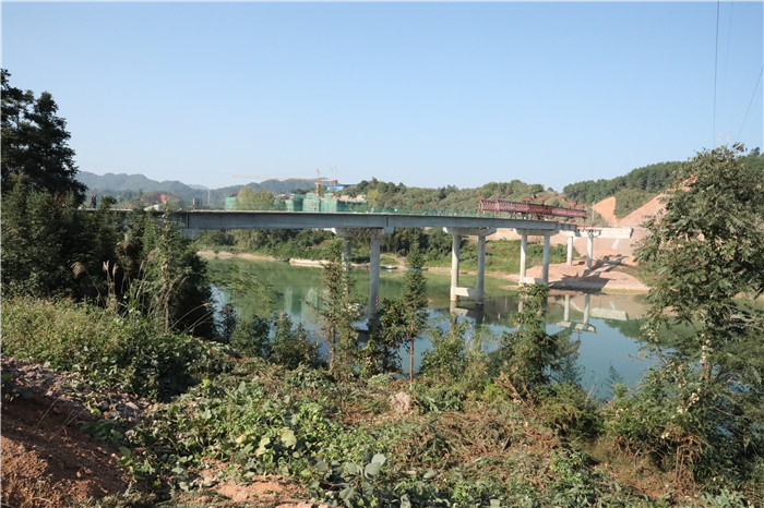 G209会同绕城公路是湖南省交通运输“十二五”发展规划中期调整项目,路线北起林城镇竹寨村,往西上跨焦柳铁路,经林城镇小寨、龙塘、酿溪、长田、大桥村,止于林城镇大桥村水坪溪。线路全长9.239公里,采用二级公路标准建设,设计速度60公里/小时,路基宽度12米,路面宽10.5米,为沥青混凝土路面,有大桥2座(上跨焦柳铁路立交桥长113米、渠水大桥长2477.16米),中小桥2座(酿溪中桥、洪括塘桥)。项目总投资设计概算为1.5927亿元,省交通运输厅预算批复为1.3046亿元,建设工期为30个月,2016年5月正式开工,计划2018年11月交工。目前,全线路基已基本拉通,4座桥梁下部构造已完成,绝大部分梁已制成。计划今年全线路基成型,并架通4座桥梁,力争完成部分路面工程;明年全面完成路面工程、安保工程及绿化工程等,确保按期交工验收。